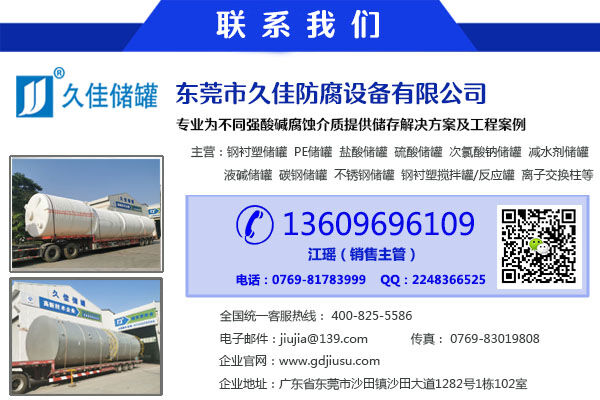 公司主要產品包括:久塑牌(1-125m3)立/臥式鋼襯塑(PE/PO)/碳鋼/不銹鋼儲罐、(5-50m3)管口一體成型PE儲罐、鋼襯塑攪拌罐/反應罐/過濾罐/中和罐、離子交換柱及其它化工而腐蝕非標準設備。