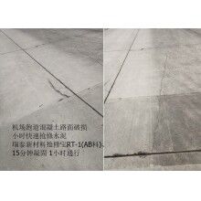 首先從材料選擇上來(lái)說(shuō),除了要求材料需要通行速度快之外,還要滿(mǎn)足機(jī)場(chǎng)道面高抗壓力,高耐磨性以及應(yīng)對(duì)惡劣的氣候及自然條件,在綜合比對(duì)后,選擇了快速修補(bǔ)材料。15分鐘凝固,1小時(shí)快速通航,強(qiáng)度高、耐久性強(qiáng)。1小時(shí)強(qiáng)度可達(dá)30MPA以上,高出普通C30水泥混凝土30天強(qiáng)度,且耐久性好,耐磨防腐蝕。施工簡(jiǎn)便,無(wú)需灑水養(yǎng)生