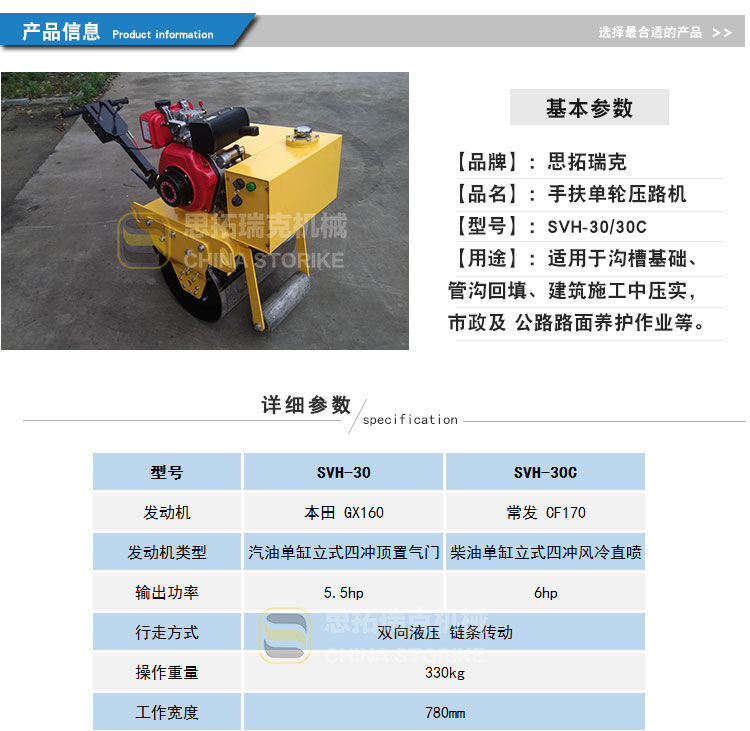 歸屬行業(yè):山東思拓瑞克SVH30 小型手扶式單鋼輪壓路機(jī)