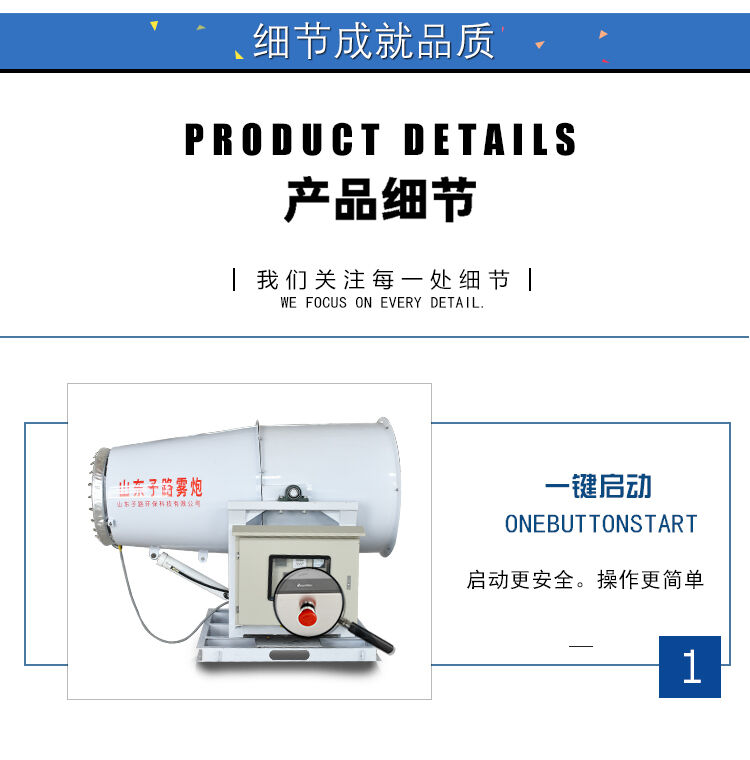 直徑相近的水霧和的粉塵顆粒黏貼,減小水表面的張力,使粉塵顆粒與水霧聚結(jié)成團(tuán),在重力作用下,然后沉降到地面。達(dá)到有效降塵的目的。霧炮機(jī)的噴水距離為30到150米,具體規(guī)格可以定制,配套水箱可選3-10噸,主要作用是噴霧抑塵,