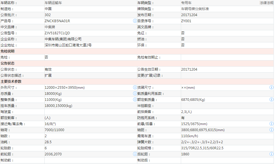 歸屬行業(yè):ZJV5182TCLQD中集車(chē)輛運(yùn)輸車(chē)