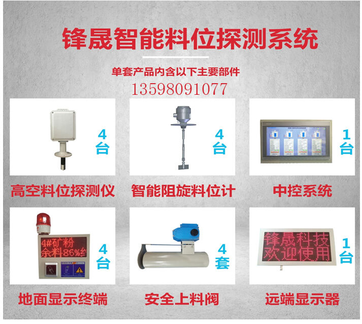 高空料位探測儀、阻旋式料位計(jì)、中控系統(tǒng)、地面顯示終端、安全上料閥、遠(yuǎn)程顯示器六大子系統(tǒng)組成!