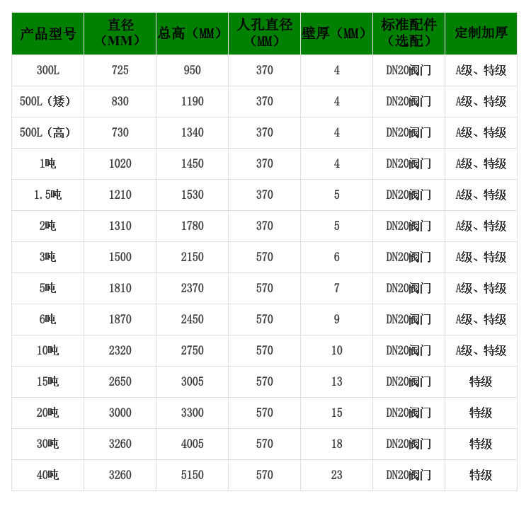 B級(jí):主要是存飲用水儲(chǔ)水,工業(yè)用低酸,低堿用(在A級(jí)的基礎(chǔ)上增加厚度)