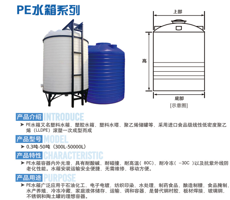 資陽(yáng)水箱、內(nèi)江塑料桶、南充儲(chǔ)罐水桶產(chǎn)品常用名稱:PE水箱、PE桶、蓄水箱、儲(chǔ)水箱、PE儲(chǔ)罐、塑料儲(chǔ)罐、清洗水箱、塑料水塔儲(chǔ)罐、聚乙烯水箱、反滲透塑料水箱、超濾水箱、原水箱、純水箱、中水回用水箱、屋頂水箱、塑料桶。pe塑料水桶