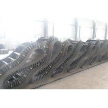 我們可以生產(chǎn)普通一般的大傾角裙邊輸送帶,是由基帶,擋邊,隔板三部分組成,三者共同作用,幫助物料提升到指定高度。基帶,擋邊,隔板是通過二次硫化的方式硫化到一起的,十分的牢固。另外為了能夠在物料大批量運輸下隔板的穩(wěn)固,我們還在擋邊與隔板中間加入穩(wěn)固螺絲,這個我們是不收取任何費用的。
