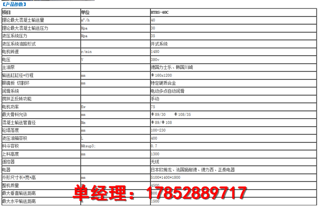 理論最大混凝土輸送量:40m3/h