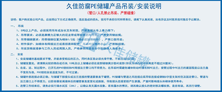 久佳牌PE儲(chǔ)罐說明