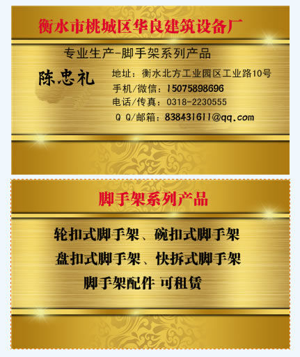 衡水市桃城區(qū)華良建筑設(shè)備廠150-7589-8696  直插式腳手架的特點: