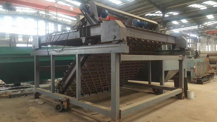 由操作工按下輸送按鈕啟動(dòng)鏈板輸送機(jī)將料袋輸送出包裝位置,待叉車(chē)來(lái)把托盤(pán)運(yùn)走。