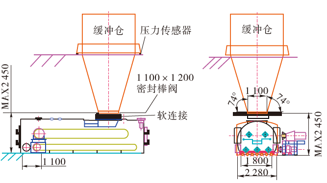 圖2 料封倉+全密閉板式喂料機結(jié)構(gòu)示意