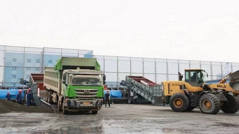2)側(cè)傾自卸運煤汽車直接卸煤至地表給料機(jī)的接收料斗;
