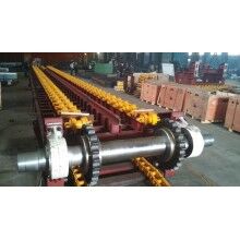 (1)將原GBZ1800×10000mm板式給料機(jī)改為GBZ1800×8200mm,設(shè)備頭部截短1.8m,尾輪在水平方向上基本不變。同時,為了節(jié)約成本并縮短整改工期,板喂機(jī)的頭尾輪以及傳動均未改動,并保留原刮板機(jī)。