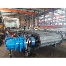 板式給料機(jī)結(jié)構(gòu)組成:底座、機(jī)架、機(jī)頭、驅(qū)動(dòng)輪、機(jī)尾張緊輪、上下托輥、鏈帶、槽板、受料槽、卸料槽和封閉欄板組成。