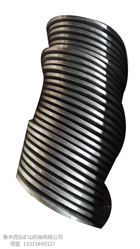 絞龍葉片具有剛性好,表面光潔,形狀規(guī)整,內(nèi)外徑可調(diào),長短可定,精度高,便于安裝,避免了傳統(tǒng)的手工焊接葉片因焊接質(zhì)量造成的弊端,也提高了絞龍葉片的加工能力,扎出的絞龍葉片材質(zhì)是碳鋼板,Q235,Q345和304不銹鋼板,特別是碳鋼板,絞龍葉片表面產(chǎn)生冷作硬化,硬度和耐磨性提高一倍左右,特別是外沿硬度可達HB240,希望廣大用戶不必擔心邊緣薄的原因,此設備可調(diào)試扎出幾十種規(guī)格的絞龍葉片。