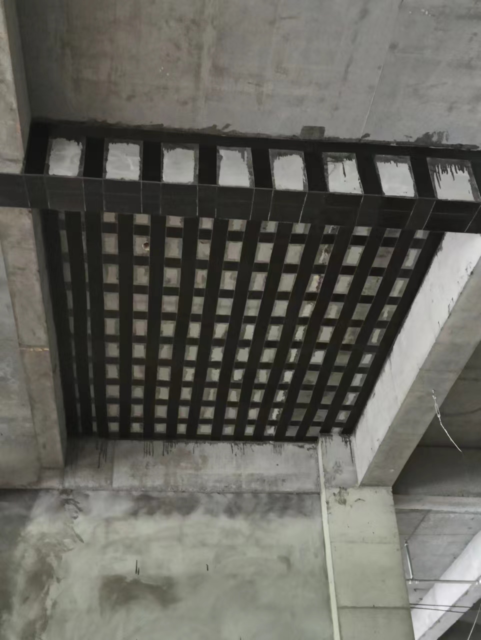 1.表面處理:清除粘貼部位混凝土表面浮漿、油污、雜質(zhì),若表面有蜂窩、裂縫,應(yīng)進(jìn)行修補,使露出結(jié)構(gòu)本體后,吹凈,并用擦凈,碳纖維材料擦除表面浮灰。