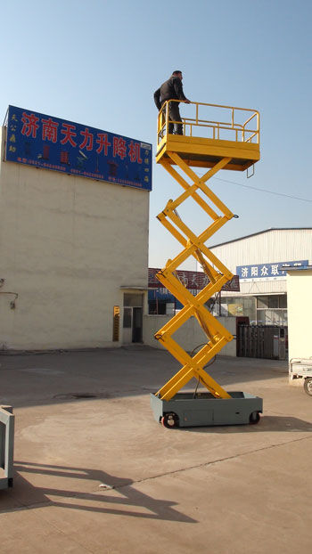 自行式液壓升降平臺自身具有行走及升降功能,行走可調(diào)速并有剎車裝置。用電瓶帶動直流電機進(jìn)行行走和升降,也可選用交流電機或柴油機進(jìn)行行走和升降,還可選用無線電子遙控器進(jìn)行升降,不需要人工牽引,不需外接電源,移動靈活方便,使高空作業(yè)更方便快捷,是現(xiàn)代企業(yè)高效安全生產(chǎn)理想高空作業(yè)設(shè)備。本產(chǎn)品也可根據(jù)用戶要求定制不同高度、不同尺寸的升降平臺!
