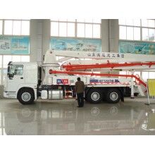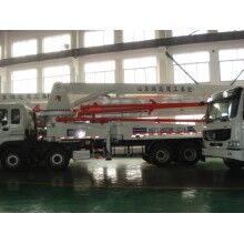 鐵力士牌HDT5420THB-52/5型混凝土泵車是山東鴻達(dá)建工集團(tuán)有限公司在中國重汽集團(tuán)濟(jì)南卡車股份有限公司同期申報(bào)的豪濼牌ZZ5437N5067C1型泵車底盤基礎(chǔ)上,加裝混凝土泵等專用設(shè)施開發(fā)、研制的。該車屬N3類柴油車,發(fā)動機(jī)布置方式為縱置,車輛驅(qū)動型式為8×4,前置后驅(qū)動。